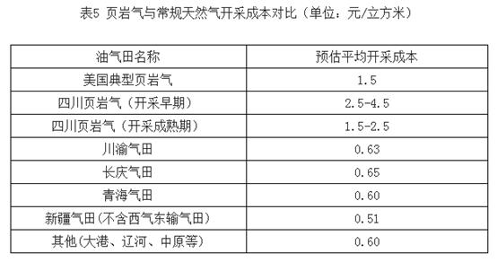 根據(jù)美國(guó)頁(yè)巖氣的開發(fā)情況,預(yù)測(cè)目前中國(guó)四川盆地的頁(yè)巖氣開采成本2.5-4.5元/立方米(現(xiàn)階段預(yù)測(cè)頁(yè)巖氣開采的經(jīng)濟(jì)性尚缺乏很多實(shí)證數(shù)據(jù),因此該數(shù)據(jù)僅具備參考意義),高于美國(guó)頁(yè)巖氣成本,更遠(yuǎn)高于國(guó)內(nèi)天然氣的開采成本。產(chǎn)量是頁(yè)巖氣開采成本的關(guān)鍵指標(biāo),隨著開采技術(shù)的成熟,頁(yè)巖氣成本具備較大下行空間,預(yù)計(jì)開采成熟期,四川盆地的頁(yè)巖氣開采成本可降至1.5-2.5元/立方米。